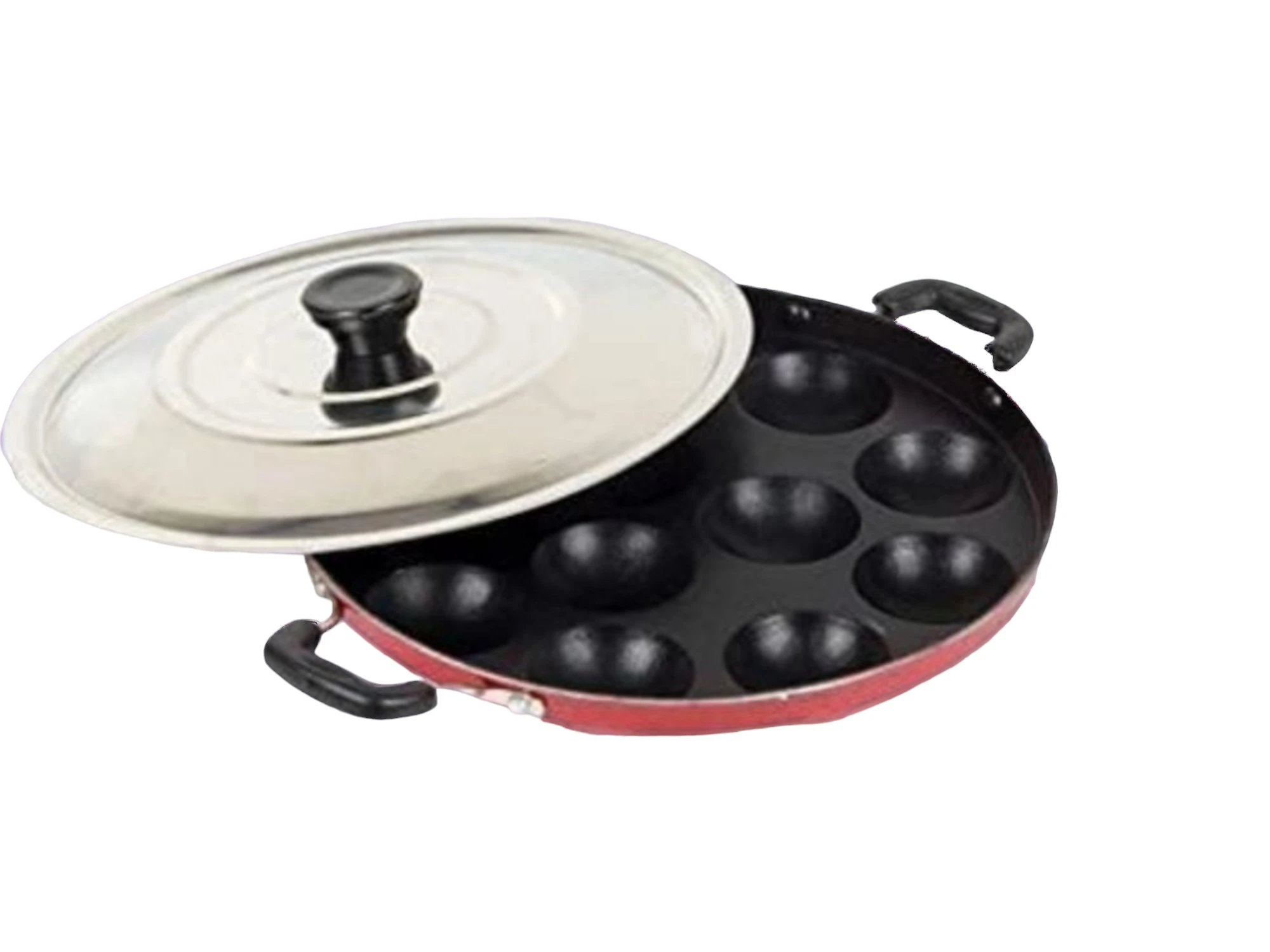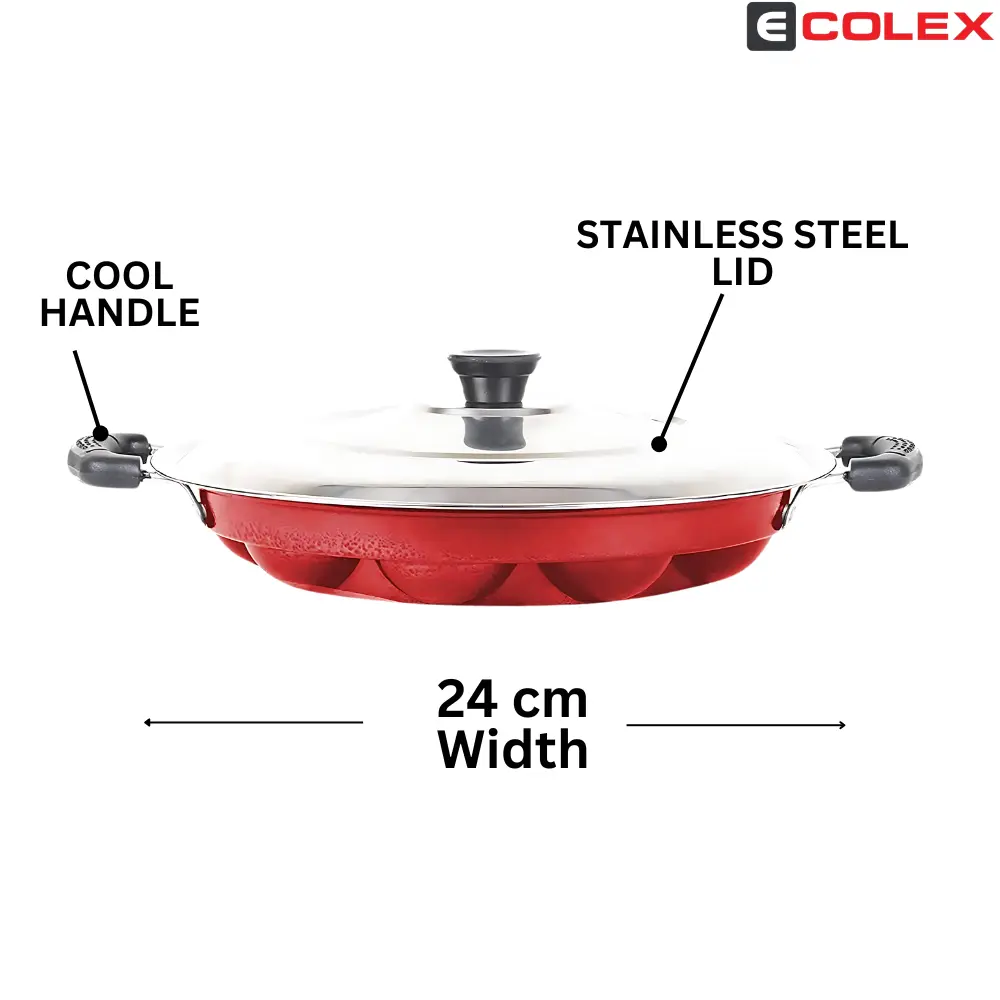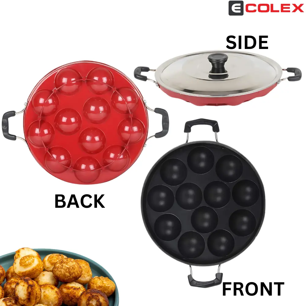 ECOLEX 12 Cavities Non Stick Appam Patra with Lid and Side Handle/ kulipaniyaram pan nonstick/ appe/panniyaram kadai/Paniyaram/Appam Pan/Appam Maker/appam kadai/idali Maker/idli Pan kadai/litti maker Paniarakkal with Lid Paniarakkal with Lid 0.5 L capacity 23 cm diameter (Aluminium, Non-stick)