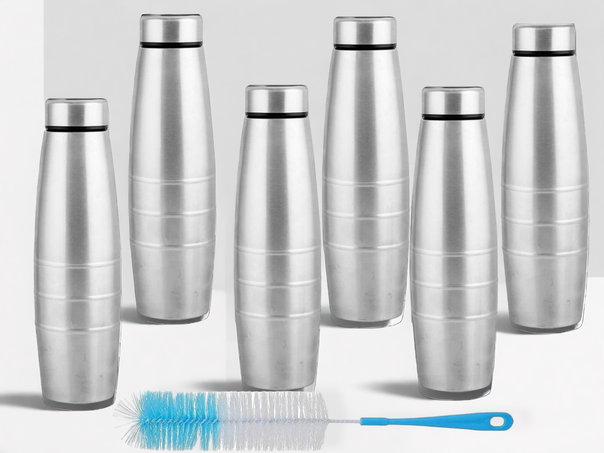 ECOLEX Stainless Steel Damroo water Bottle 1000ml for Home/Office/Gym/School/College (Pack of 6 with free brush)