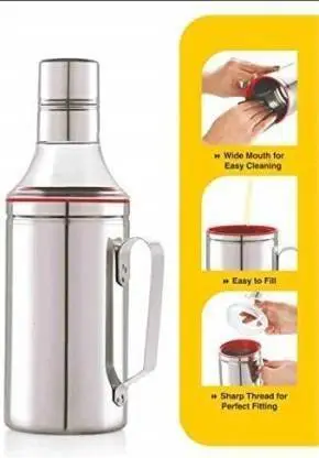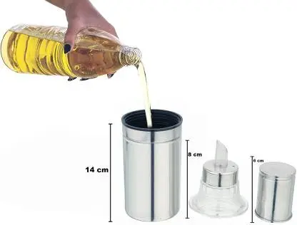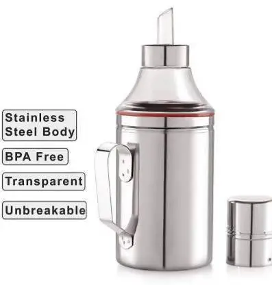 ECOLEX High Durable Stainless Steel Cooking Oil Dispenser or Oil Can 1000 ml (Pack of 2, Silver)