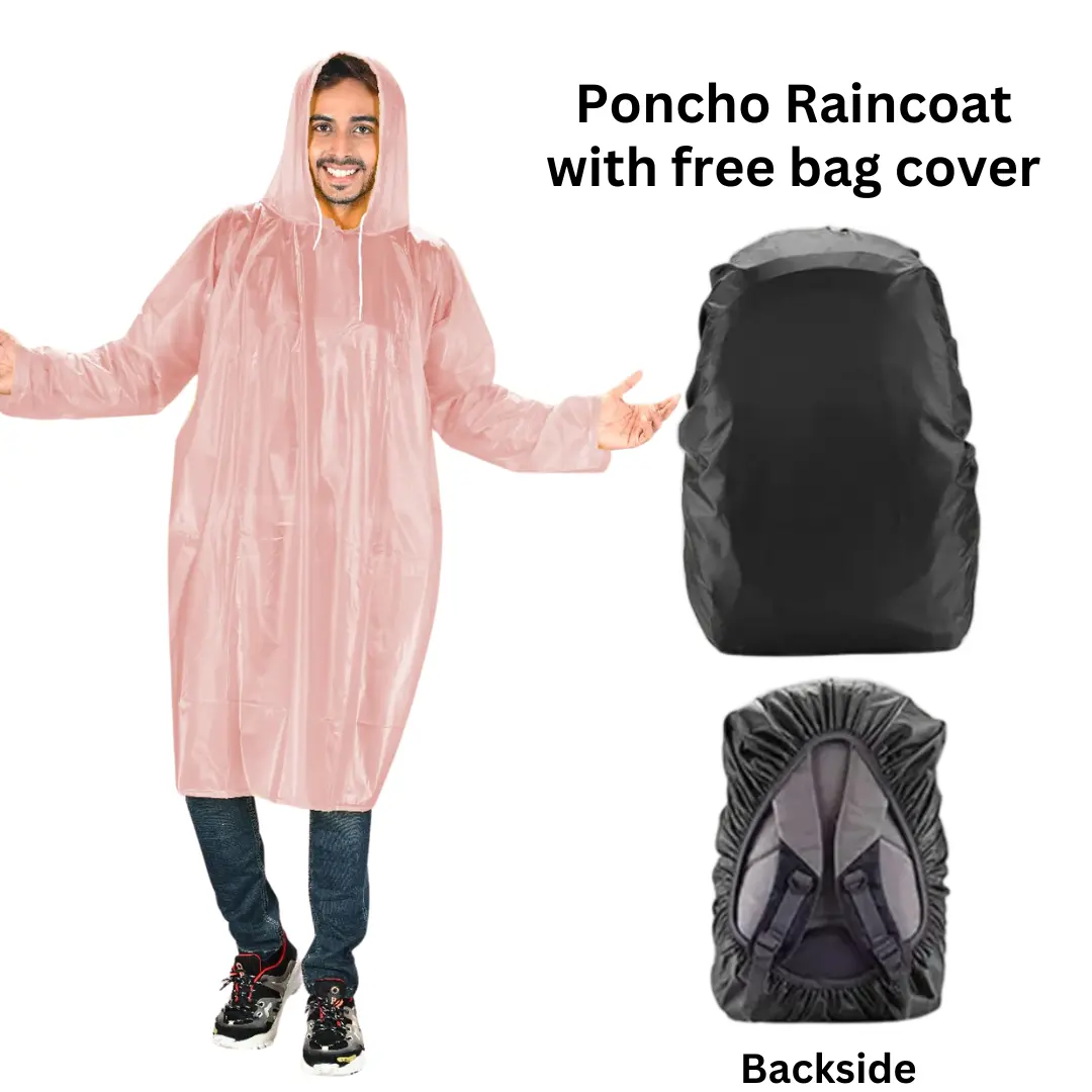 ECOLEX Poncho Raincoat for Women and Men and Bag Cover I Waterproof, Hooded, Reusable, Full Sleeves I Hiking and Trekking I Easy to Wear and Carry, Comfort Fit I Pink, Free Size]