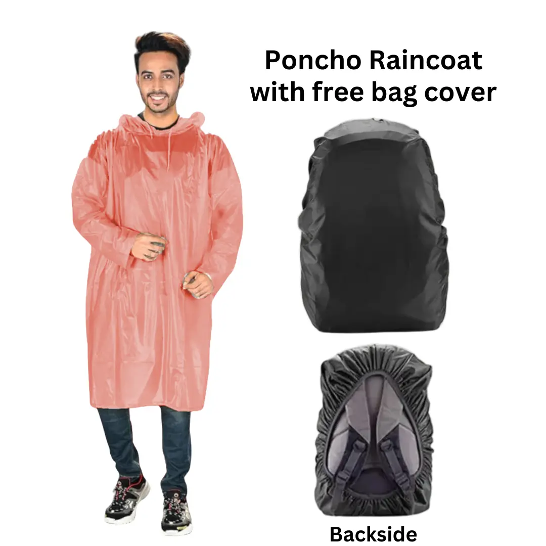 ECOLEX Poncho Raincoat for Women and Men and Bag Cover I Waterproof, Hooded, Reusable, Full Sleeves I Hiking and Trekking I Easy to Wear and Carry, Comfort Fit I Red, Free Size]