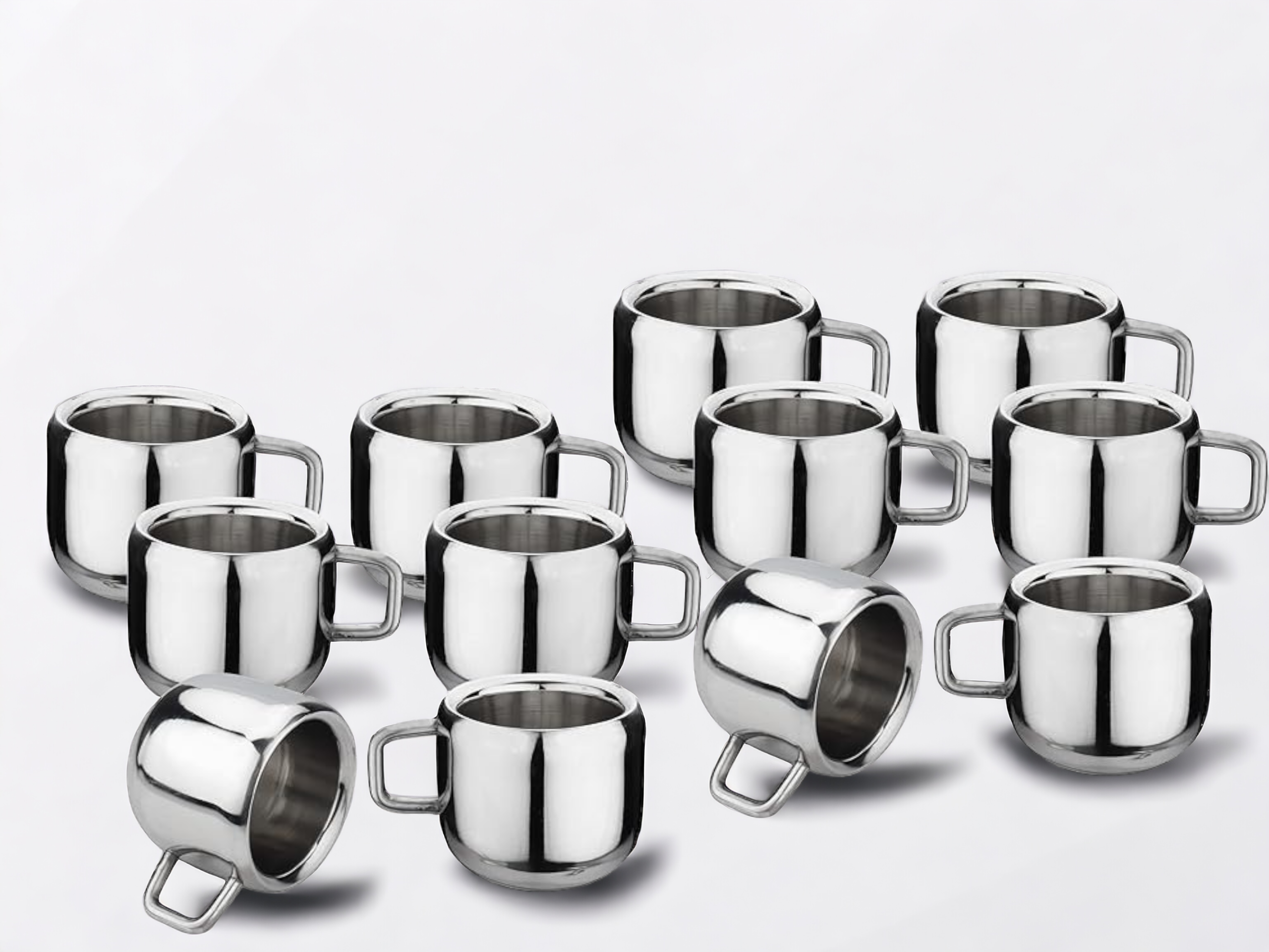 ECOLEX Stainless Steel Tea Cups Pack of 12 I Coffee and Tea Cup 100 ml Unbreakable Cups for Tea and Coffee I Stainless Steel Coffee Mug, | Steel Cups | Coffee Cups | Mini Cups Set of 6 | Chai ka Cup | Steel Tea Cups Set of 6 Single Wall Silver 100 ML Fancy Cups, Mugs & Saucer | Unique Cups, Mugs & Saucers | Trendy Cups, Mugs & Saucers | New Cups, Mugs & Saucers | Stylo Cups, Mugs & Saucers